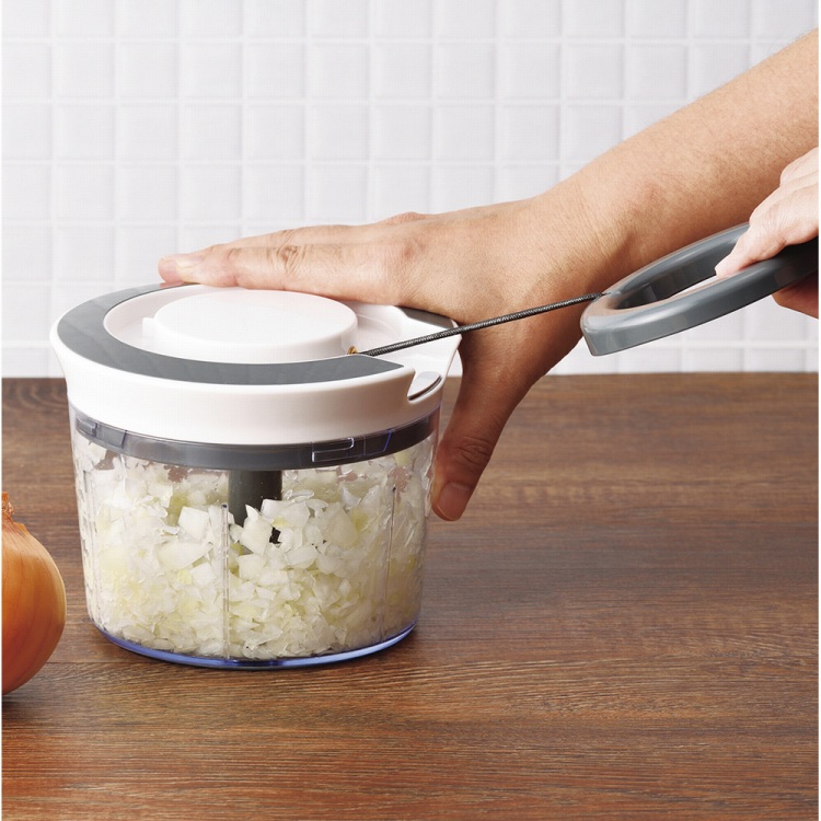 丸型ハンドルを引っ張るだけで、面倒なみじん切りが簡単にできます。