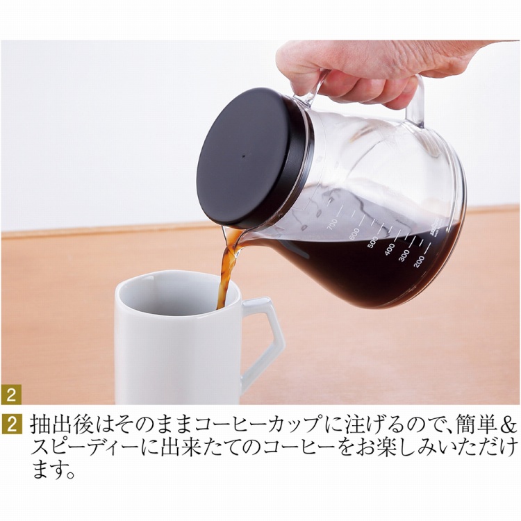 抽出後はそのままコーヒーカップに注げるので、簡単&スピーディーに出来たてのコーヒーをお楽しみいただけます。