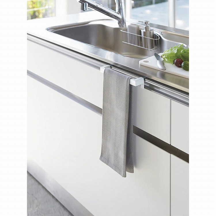 扉の厚みにぴったりと調節して固定できるタオルハンガー。