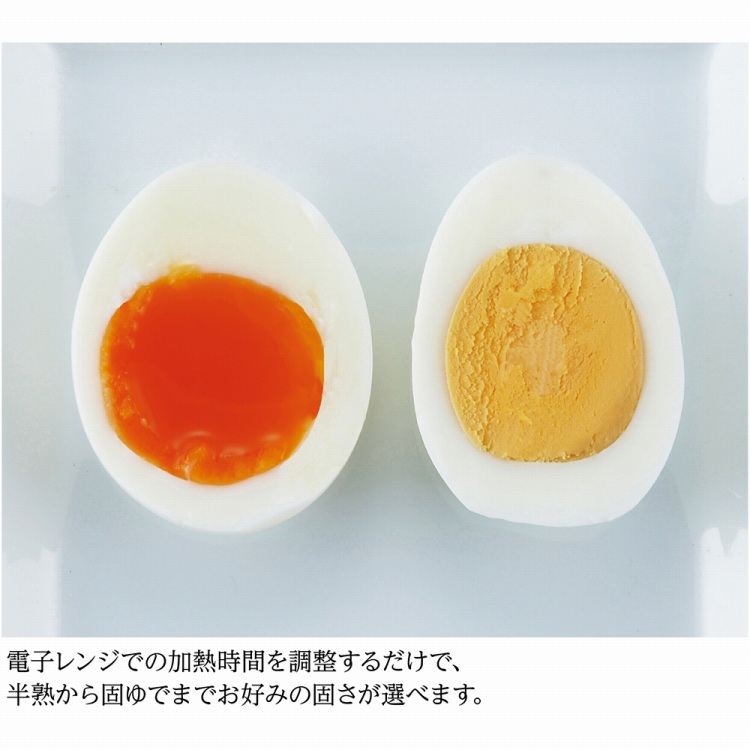 電子レンジでの加熱時間を調整するだけで、半熟から固ゆでまでお好みの固さが選べます。