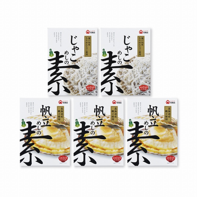 商品内容●セット内容:帆立めしの素230g(2合用)×3、じゃこめしの素230g(2合用)×2