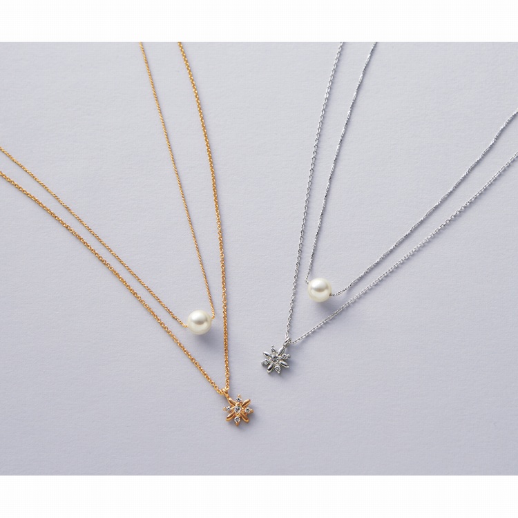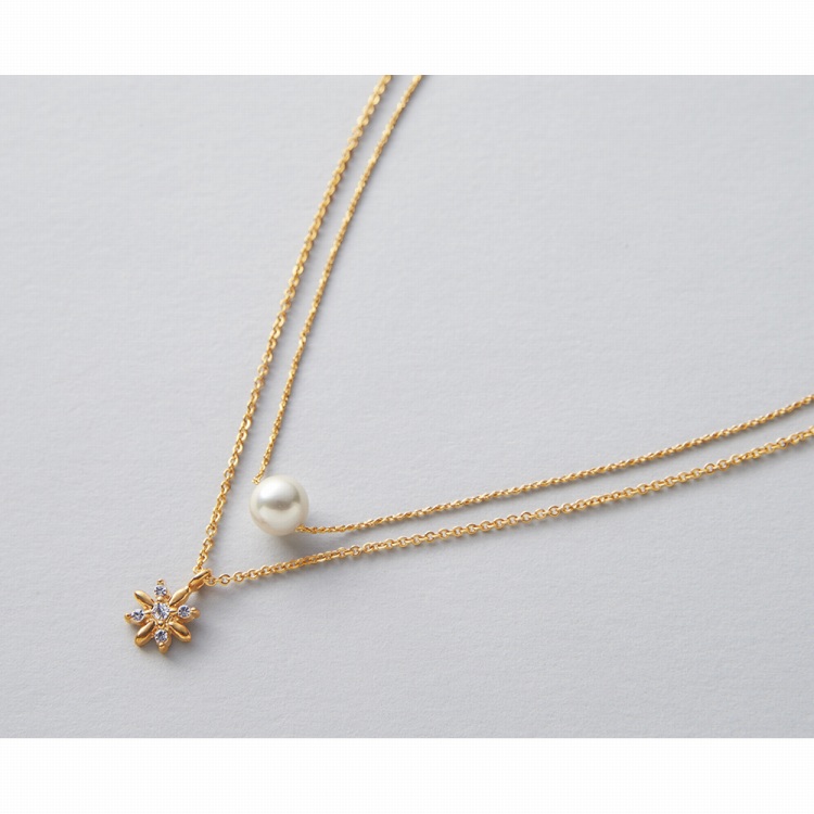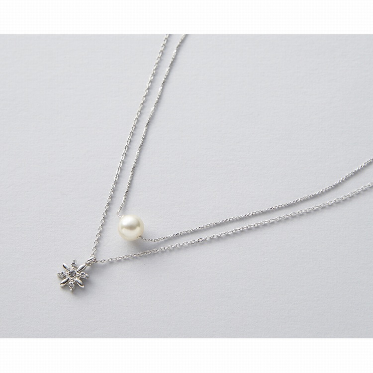 ●材質:ヘッド/ガラス・錫合金(シルバー/ロジウムカラーメッキ、ピンクゴールド/ピンクゴールドメッキ)・人工貝パール、鎖/真鍮(シルバー/ロジウムカラーメッキ、ピンクゴールド/ピンクゴールドメッキ)
