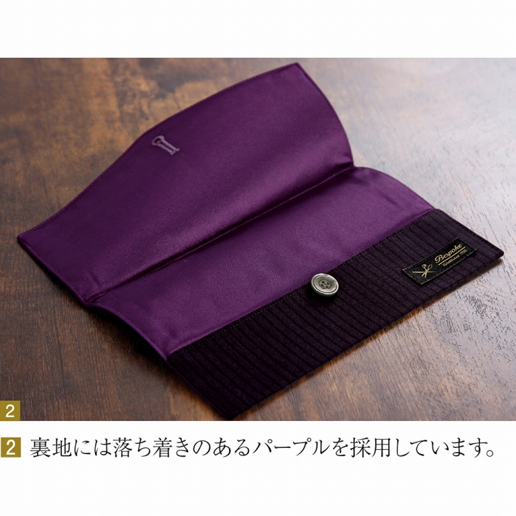 この美しいふくさは、技術と品質すべてにこだわりを持つテーラー監修のもと、英国の紳士用服地を使用して仕立てています。