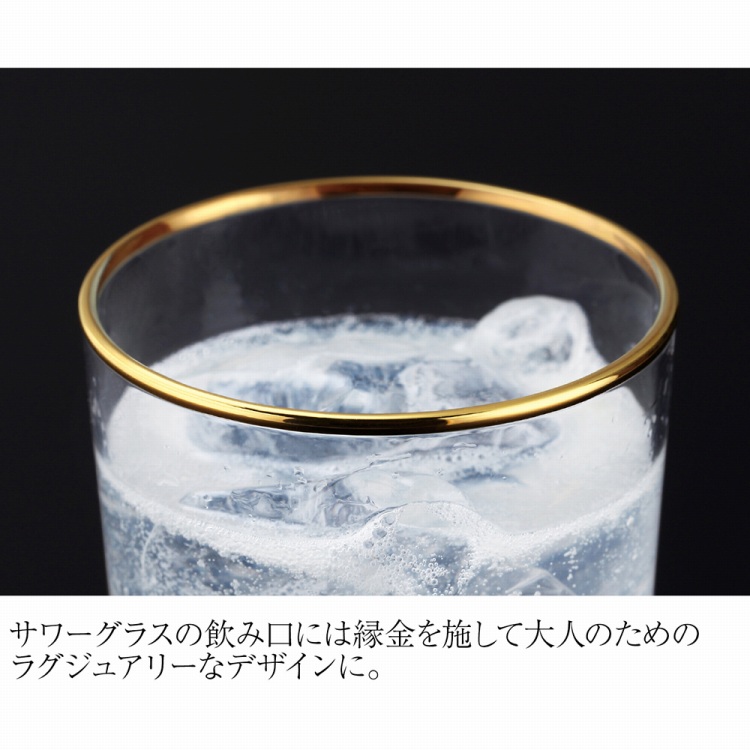 サワーグラスの飲み口には縁金を施して大人のためのラグジュアリーなデザインに。