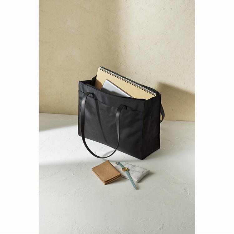 たくさんの物が入るトートバッグは、オフィスシーンで大活躍。