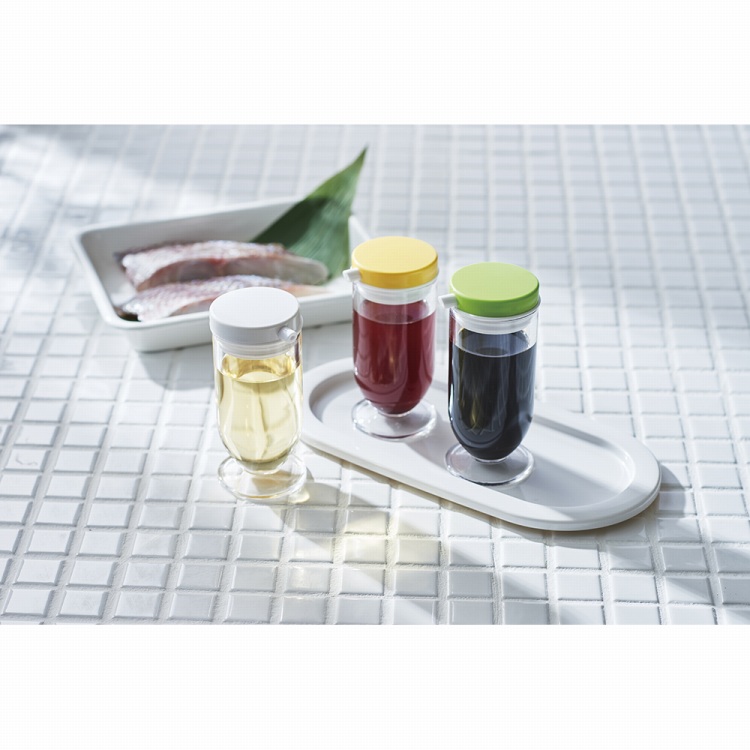商品内容●商品:調味料入れM(約径5×高さ11.4cm・120ml)×2、L(約径5×高さ12.2cm・135ml)・トレー(約25.4×12.3×高さ1.1 cm)各1