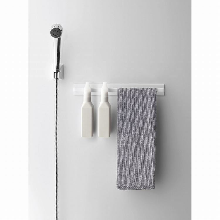 壁面を傷つけにくく、錆びにくいラバータイプのマグネットを使用したタオルハンガー。
