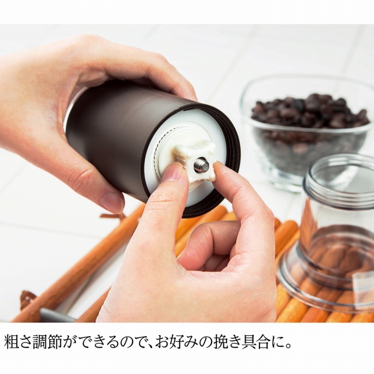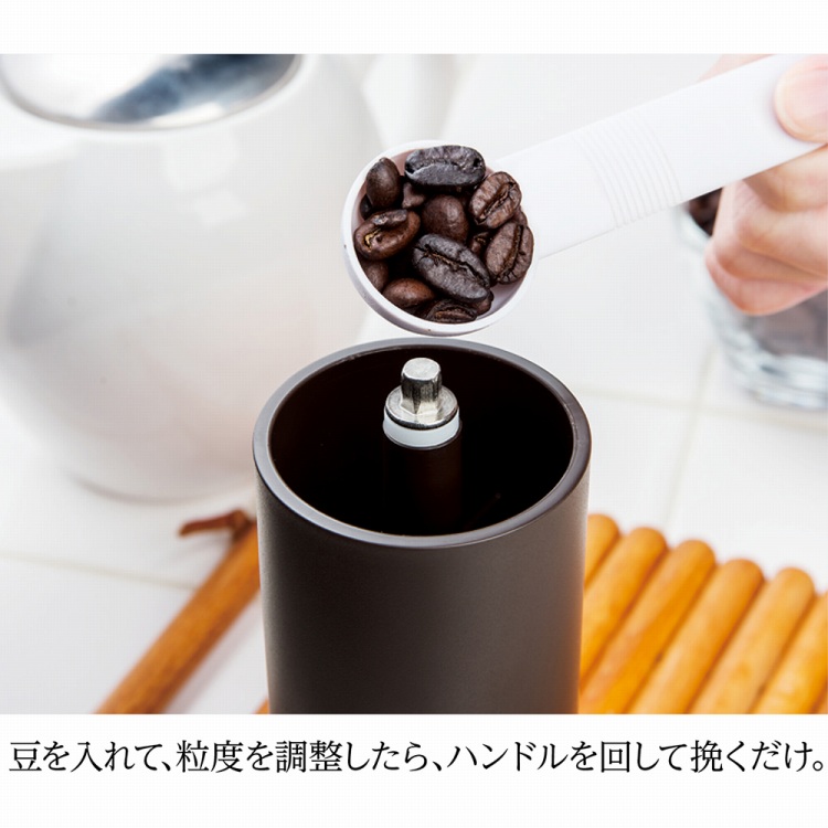 豆を入れて、粒度を調整したら、ハンドルを回して挽くだけ。