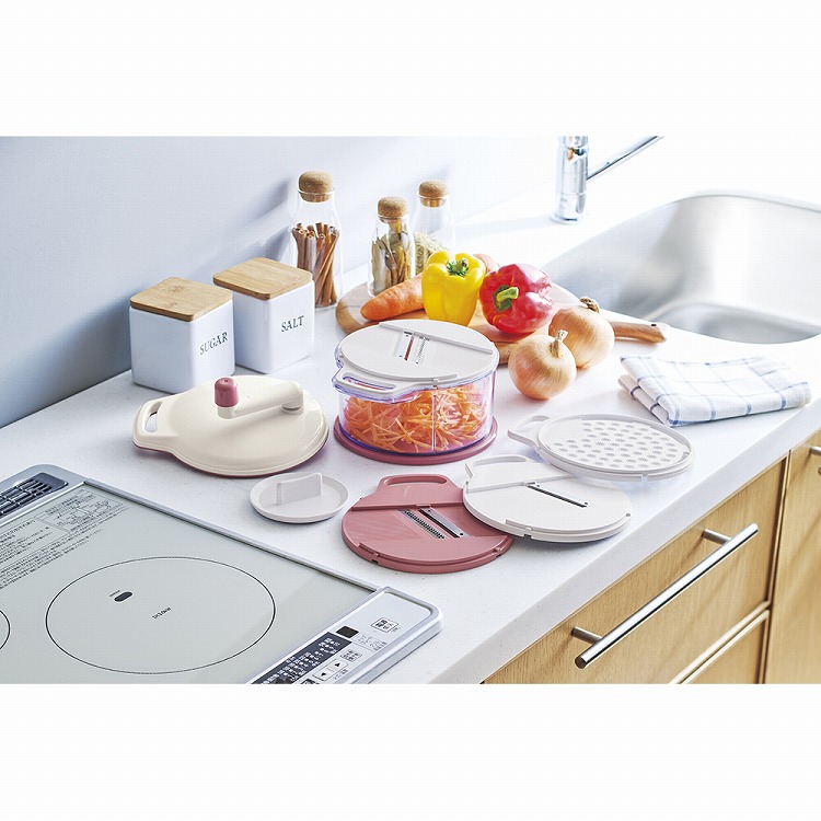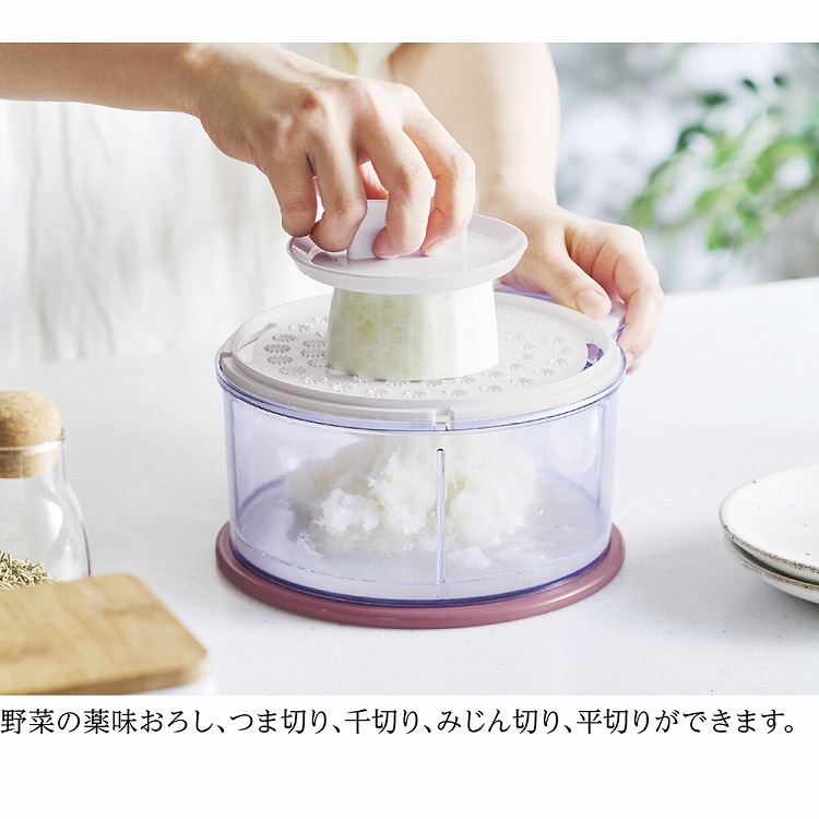 商品内容●商品:みじん切り器(約21×18×高さ18cm・容量約200g〈玉ねぎの場合〉)・野菜調理器(おろし・千切り・つま切り・平切り)・ホルダー各1