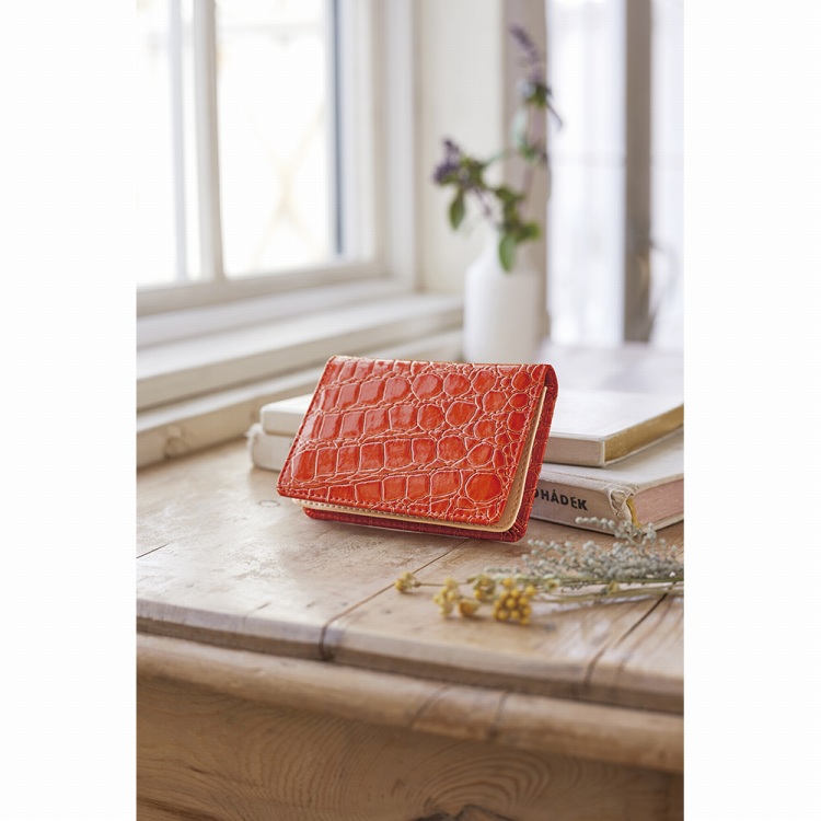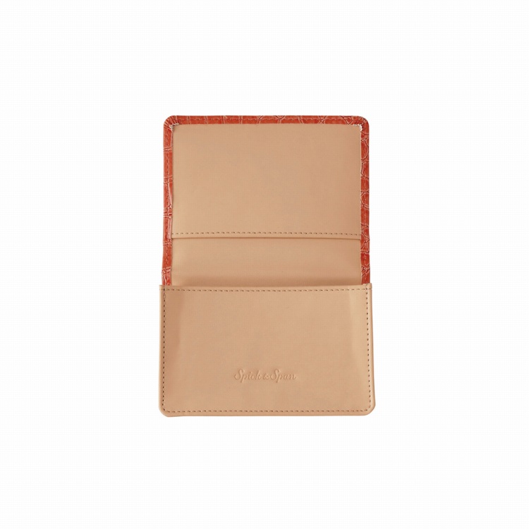 クロコ型押しの合成皮革を使用、適度な張り感と合皮特有のソフトさを兼ね備えたオリジナル名刺入れ。
