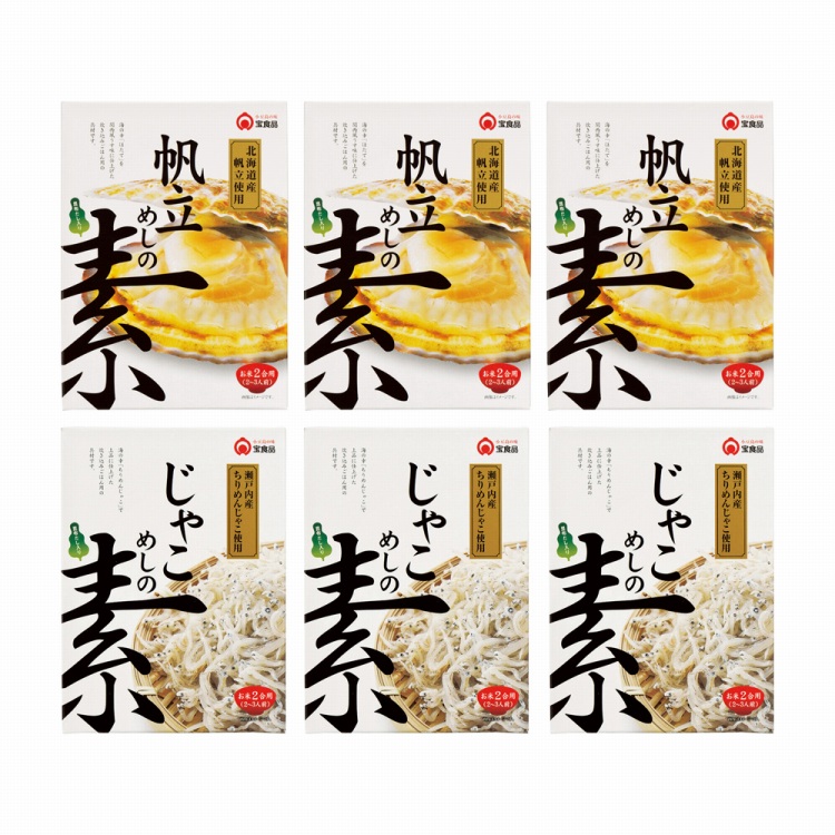 商品内容●セット内容:帆立めしの素230g(2合用)・じゃこめしの素230g(2合用)各3