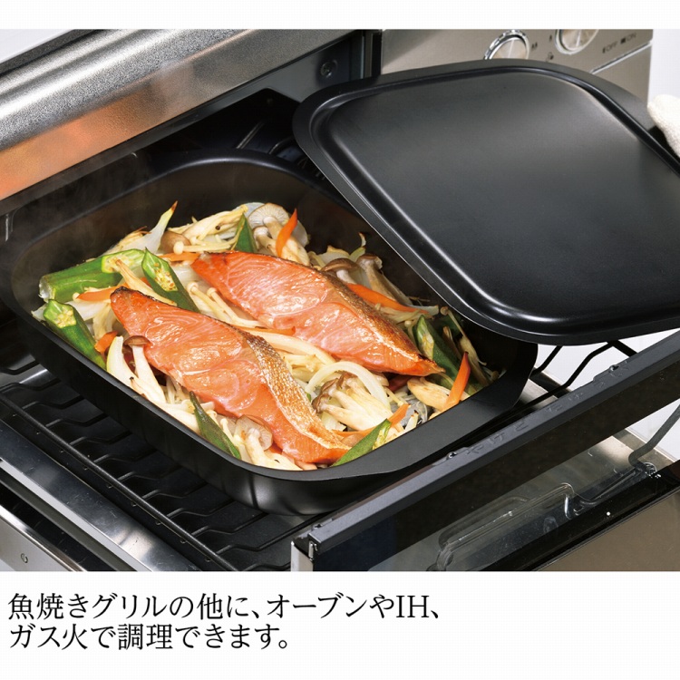 魚焼きグリルの他に、オーブンやIH、ガス火で調理できます。