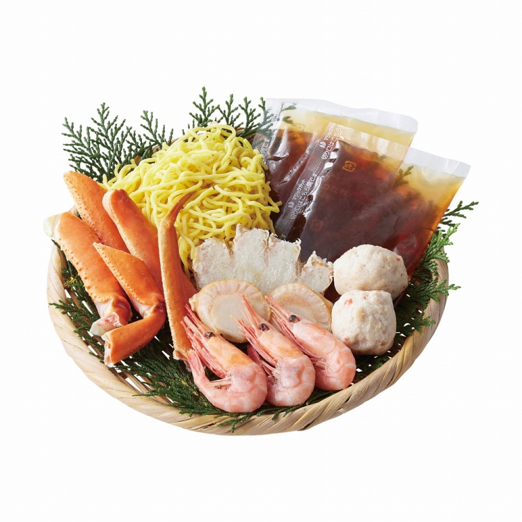 商品内容●セット内容:ボイルズワイガニカット100g×1、ボイル甘えび×3、ボイル帆立・かに入つみれ各2、ラーメン80g×1、たれ付