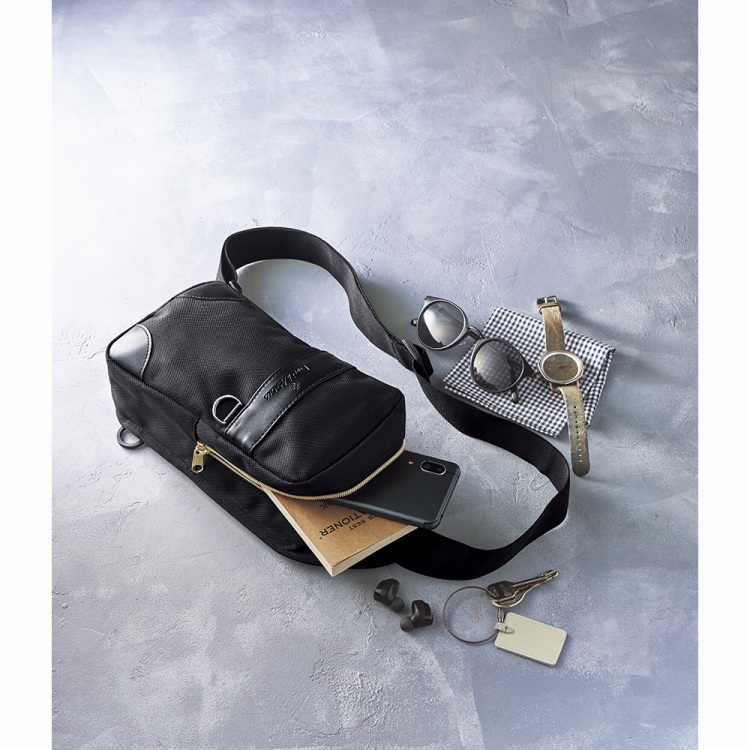 財布やスマートフォンなどの小物が収納でき、持ち運びしやすいボディバッグ。