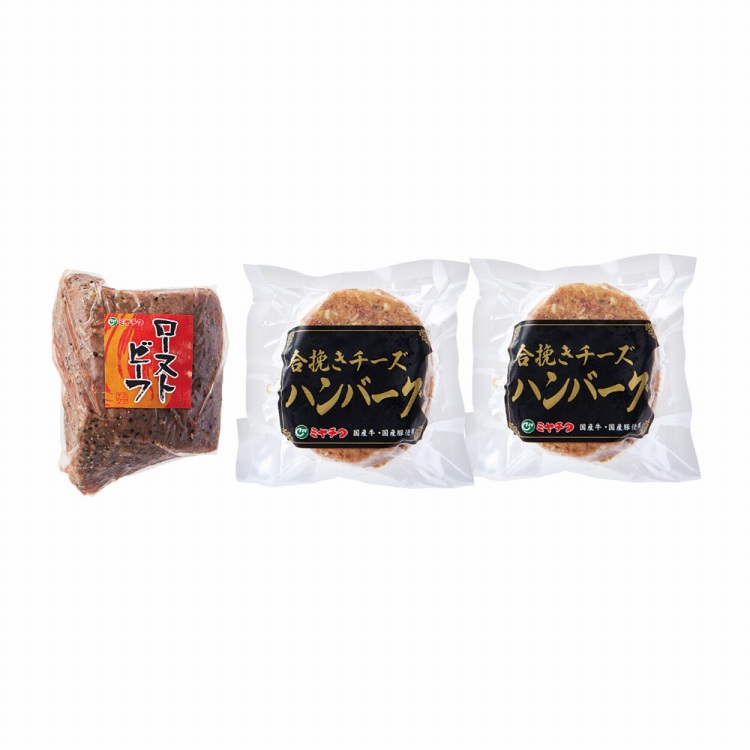 商品内容●セット内容:ローストビーフ(モモ/オーストラリア産)250g×1、合挽チーズハンバーグ2個入(合計200g)×2、ローストビーフソース・ハンバーグソース付