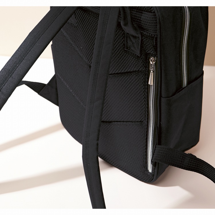 ●内容:内部/オープンポケット×2・ファスナーポケット×1、前面/ファスナーポケット×1、背面/収納部直結ファスナー×1、両サイド/オープンポケット各1、開閉部ファスナー式
