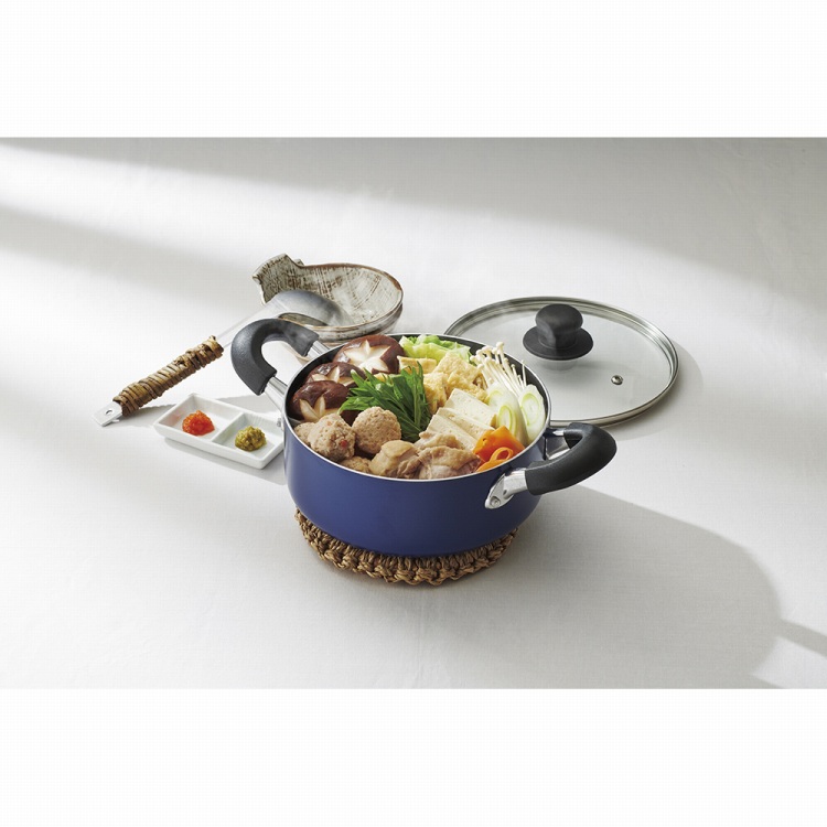 内面はフッ素樹脂加工により焦げ付きにくく、汚れが落としやすい両手鍋です。