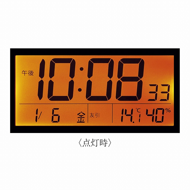 ●機能:電子音アラーム・スヌーズ・アラームオートストップ・温湿度計・カレンダー・六曜表示・残照機能ライト