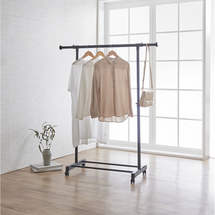 掛ける物やスペースに合わせて高さが調節できるパイプハンガー。