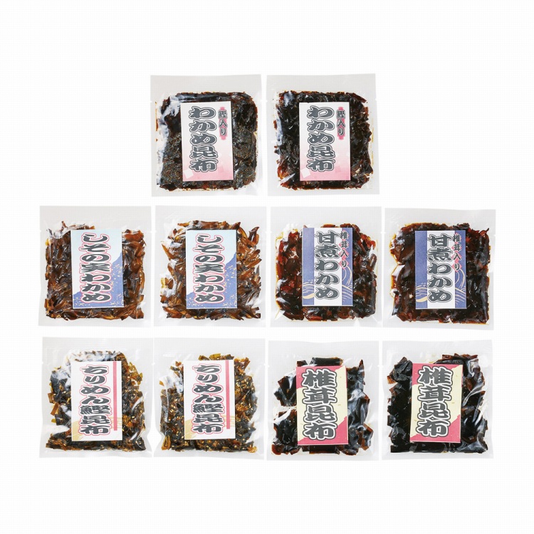 商品内容●セット内容:椎茸昆布70g・しその実わかめ70g・ちりめん鰹昆布70g・椎茸入り甘煮わかめ70g・鰹入りわかめ昆布70g各2