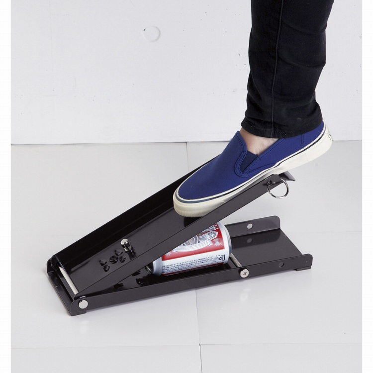 アルミ缶やスチール缶はもちろん、スプレー缶も踏むだけで潰すことができます。