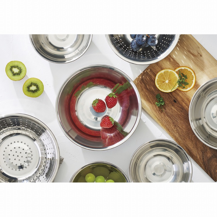 料理の下ごしらえやお菓子作りなどいろいろな用途に使えるボウルとザルのセット。