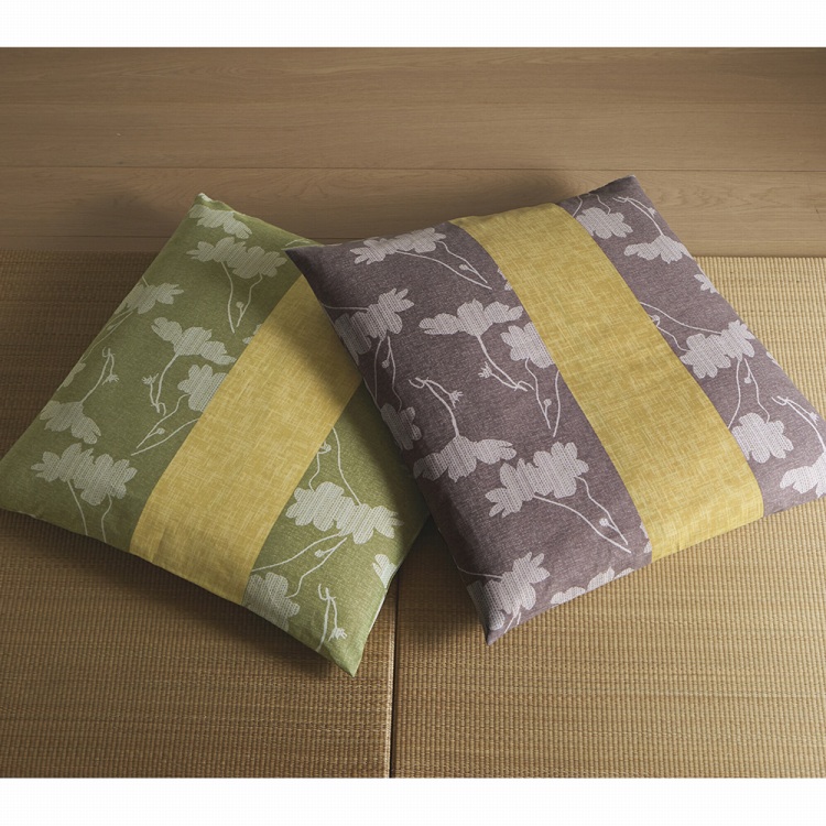 落ち着きあるカラーとモダンな柄をあしらった座布団カバーは、ちょっとカジュアルな和室作りに活躍しそうです。