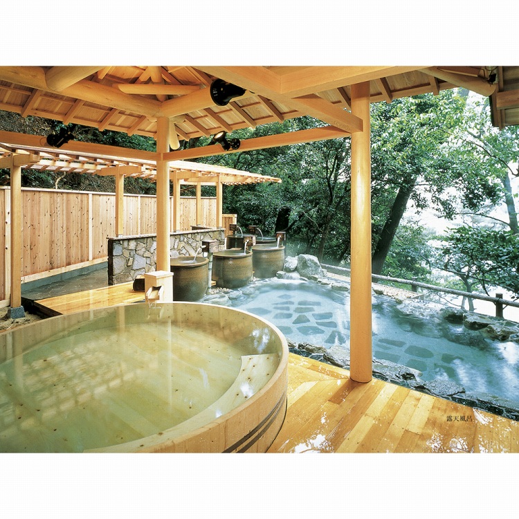青い海を眺めながらゆっくりとくつろげる、戸田家自慢の風流野天風呂を女湯「花の賀」と男湯「緑の賀」でお楽しみいただけます。