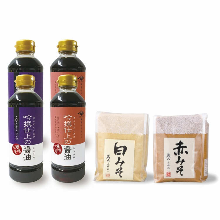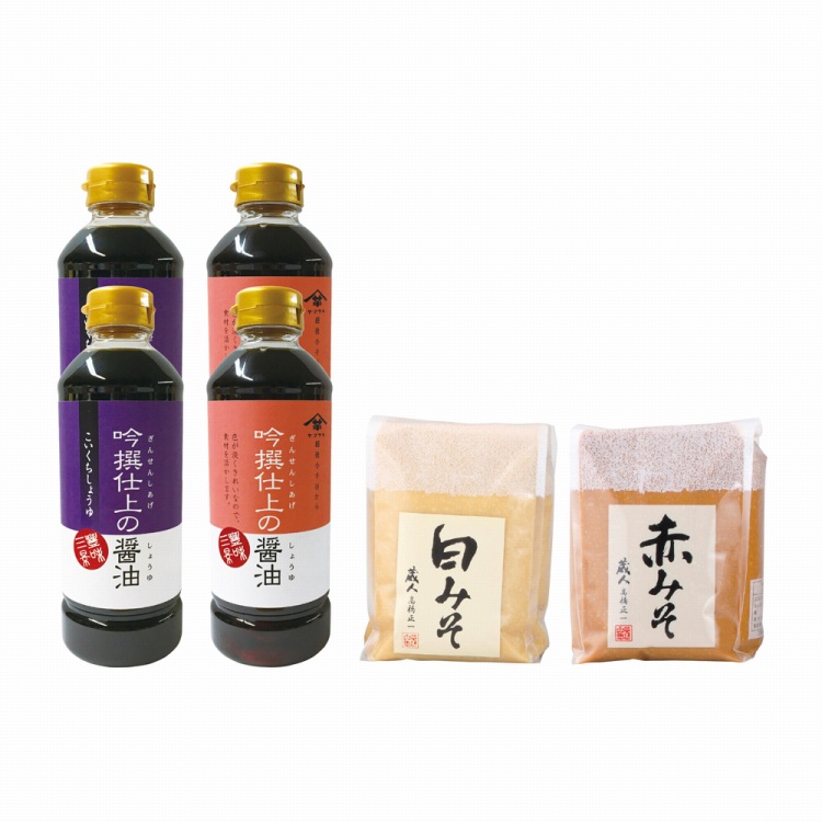 商品内容●セット内容:こいくちしょうゆ500ml・うすくちしょうゆ500ml各2、白みそ1kg・赤みそ1kg各1