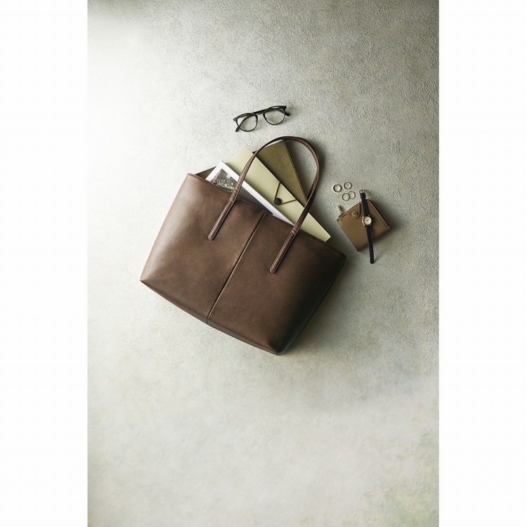 たくさんの物が入るトートバッグは、オフィスシーンの必須アイテム。