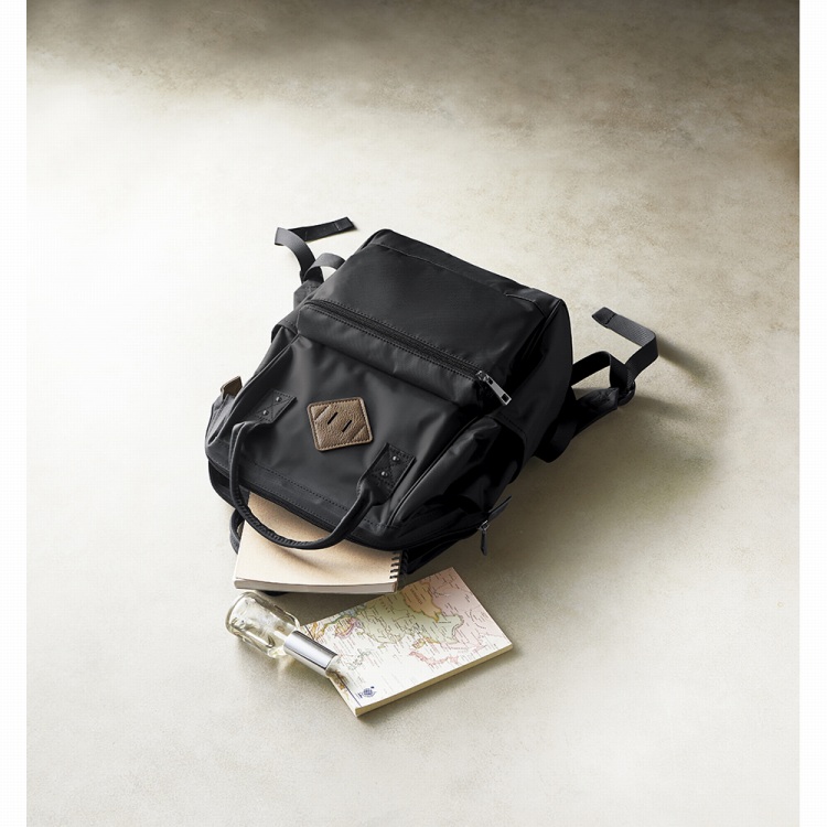 ●内容:内部/オープンポケット×2、前面/ファスナーポケット×1、背面/収納部直結ファスナー×1、両サイド/オープンポケット各1、開閉部ファスナー式