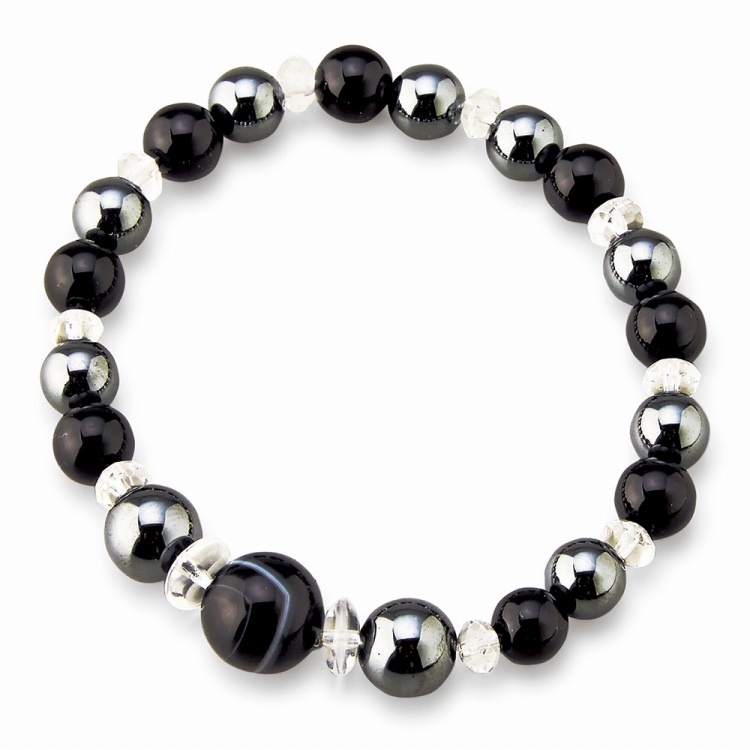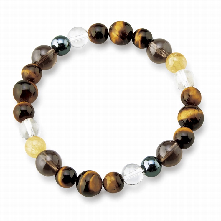 ●材質:茶系/タイガーアイ12石・スモーキークオーツ4石・水晶4石・ヘマタイト2石・シトリン2石・シリコーンゴム、黒系/水晶11石・ヘマタイト10石・オニキス8石・天眼石1石・シリコーンゴム