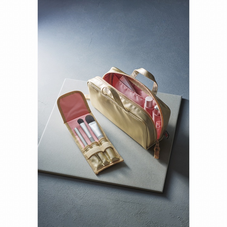 ●内容:内部/オープンポケット・リップポケット各2、開閉部ファスナー式、ブラシケース付