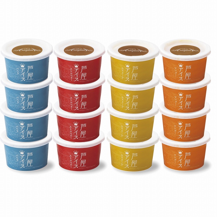 商品内容●セット内容:アイスクリーム(バニラ80ml・ストロベリー80ml・カスタード80ml各4)、マンゴーシャーベット80ml×4