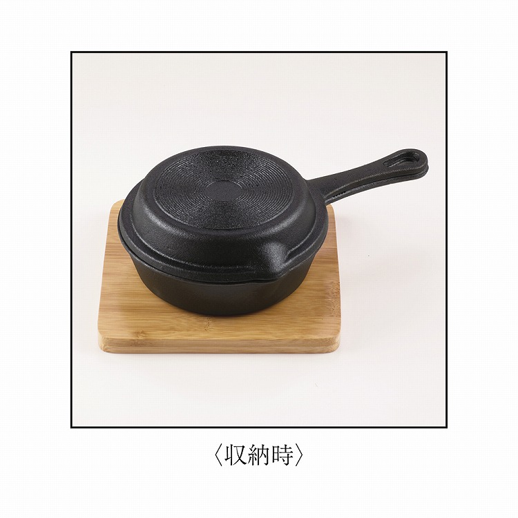 ●材質:スキレット/鉄(焼付塗装)、敷板/竹(クリア塗装)