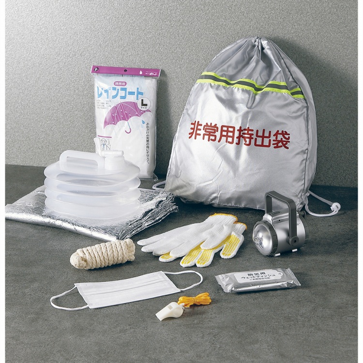 災害などの非常時に役立つ基本的なアイテムのセットです。