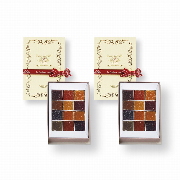 ヨーロッパでは「お菓子の宝石」とも称され、フランスでは10世紀からの伝統菓子としても有名なパート・ドゥ・フリュイ。上品なパッケージにフランス直輸入の選び抜いた【12種のフレーバー】を2個セットでご用意しました。手土産やパーティ用にもぴったりのスイーツです。