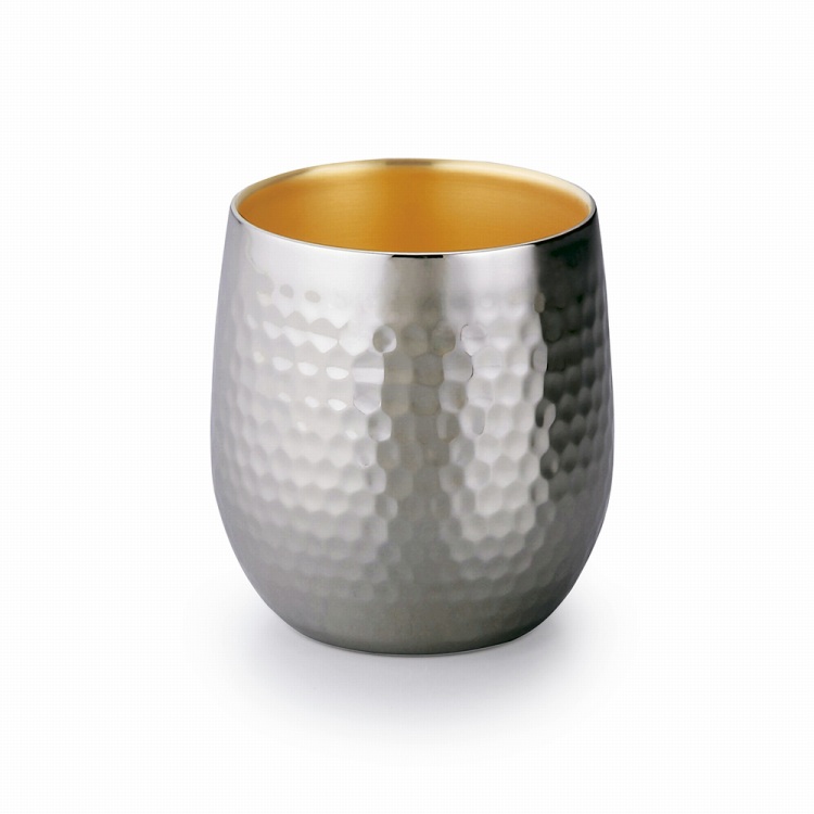 古くから金属加工の街として栄えた新潟県燕市で造られた、鎚目模様が美しい二重構造のカップです。