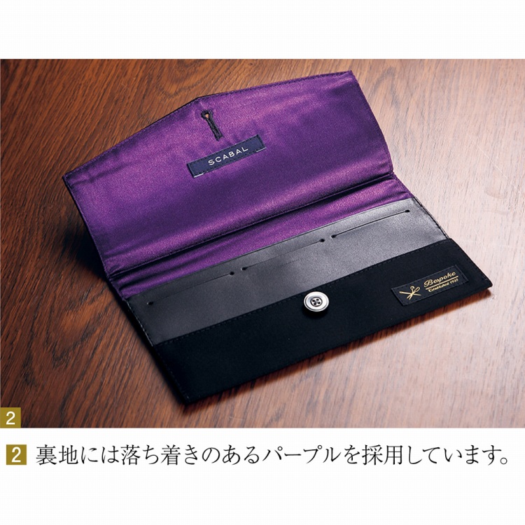 この美しいふくさは、技術と品質すべてにこだわりを持つテーラー監修のもと、「英国スキャバル社の紳士用服地」を使用して仕上げています。
