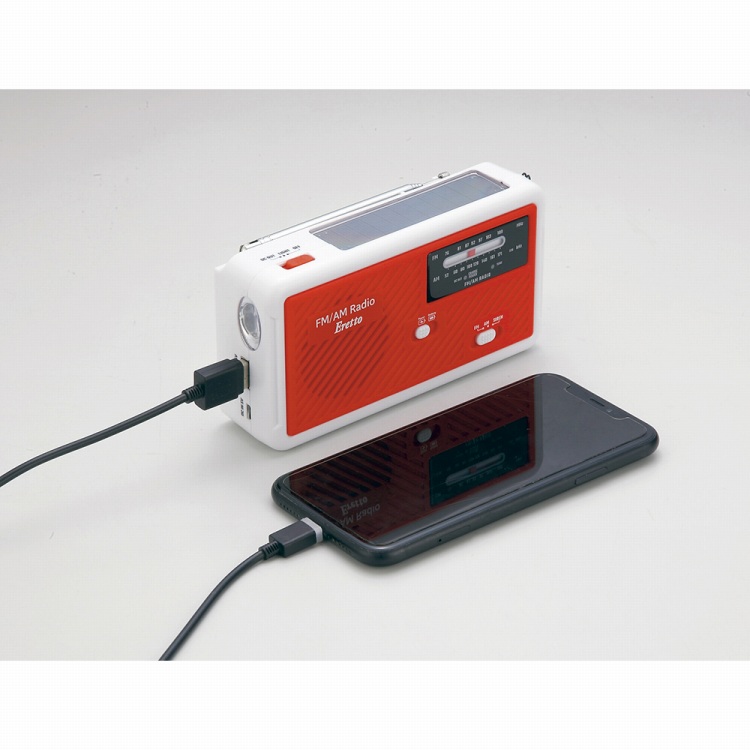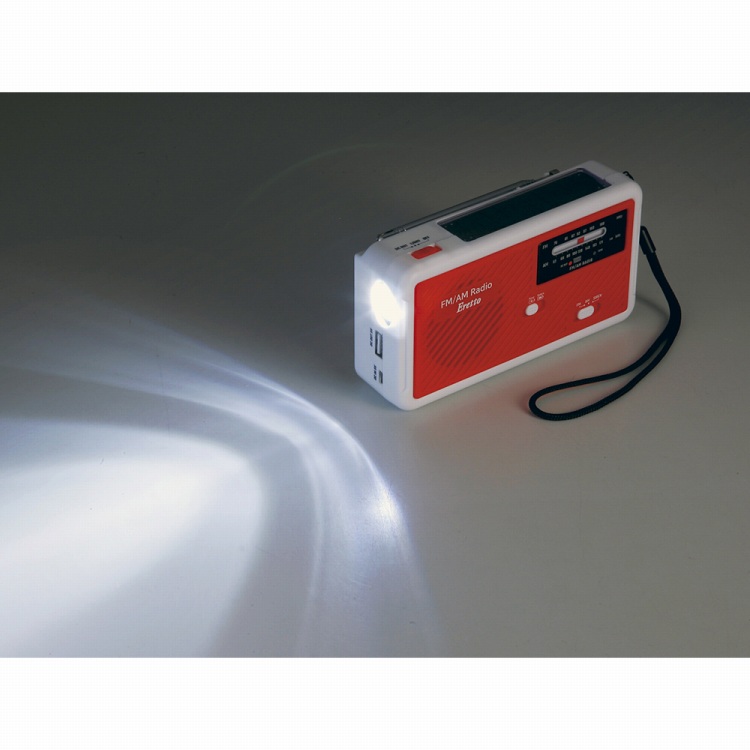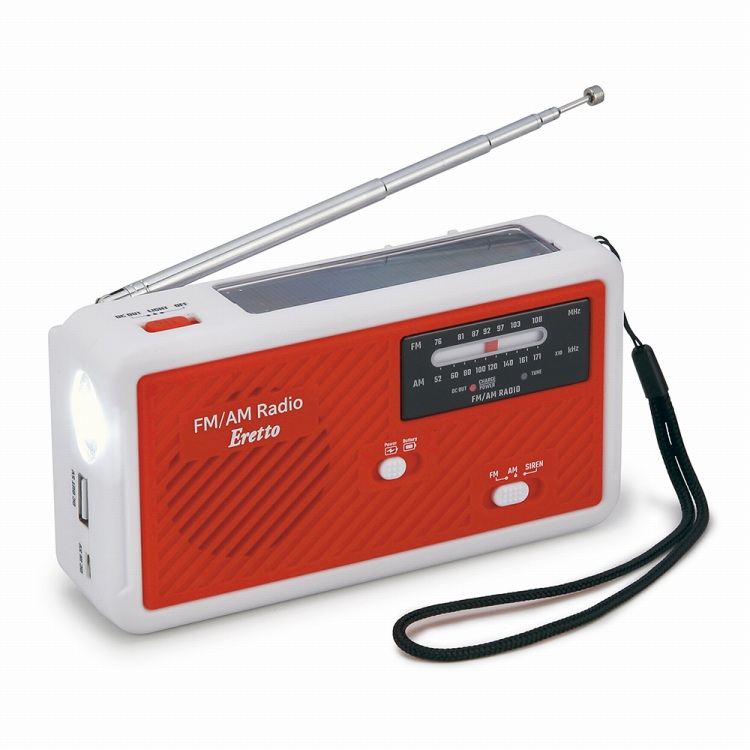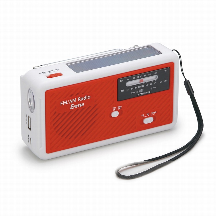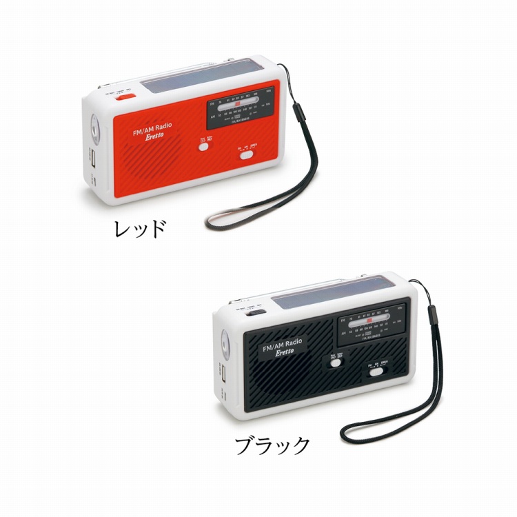 ●機能:ライト・モバイルバッテリー・AM/FMラジオ・サイレン・ソーラー充電・手回し充電・USB充電
