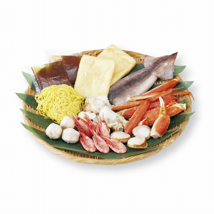 商品内容●セット内容:ボイルズワイガニカット300g・ツボ抜するめいか100g・ラーメン80g各1、ボイル甘えび×6、ボイル帆立・かに入つみれ各3、油揚げ×2、たれ付
