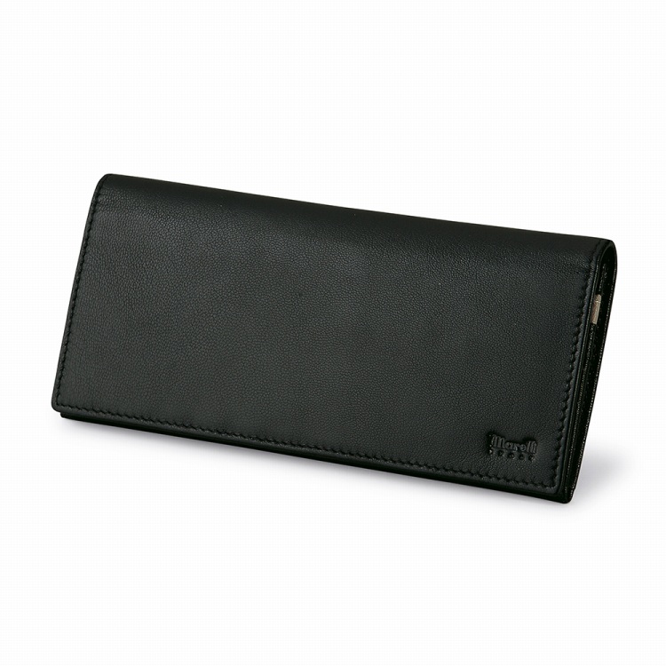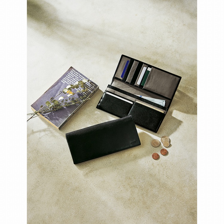 シンプルながら上質な作りを感じさせるブラックの長財布。