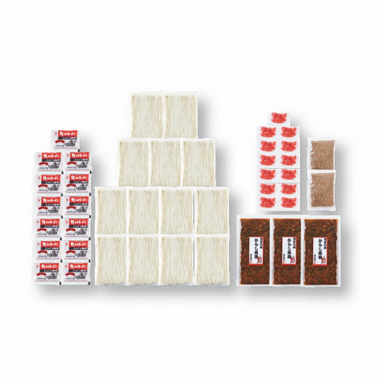 商品内容●セット内容:とんこつ(半生麺100g、スープ付)・紅しょうが各13、辛子たかな110g×3、すりごま20g×2