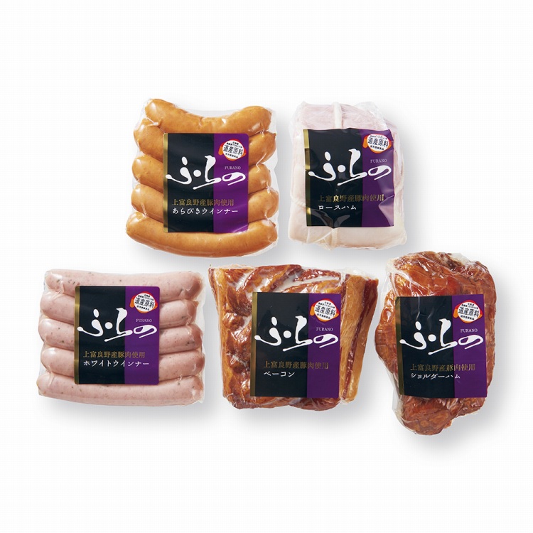 商品内容●セット内容:ロースハム270g・ベーコン270g・ショルダーハム270g・あらびきウインナー105g・ホワイトウインナー105g各1