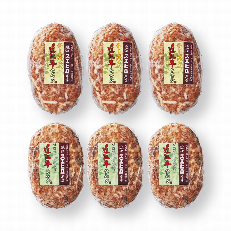商品内容●セット内容:チーズイン近江牛合挽ハンバーグ120g・ゴロゴロ牛肉入り近江牛合挽ハンバーグ120g各3