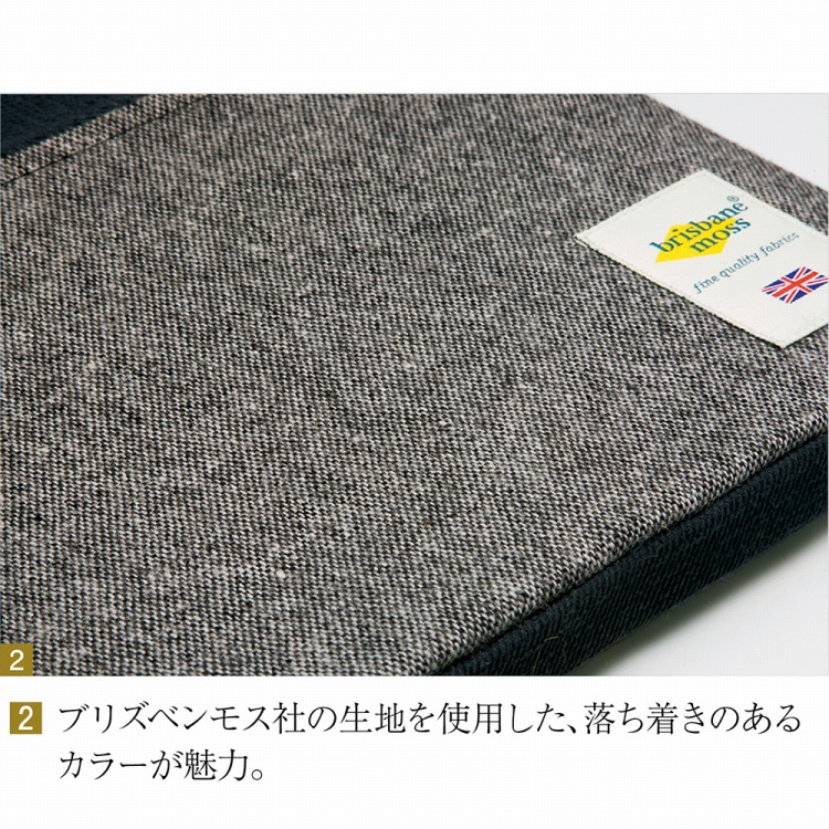 端正な美しさを感じずにはいられないこちらのPCケースは、英国の老舗、ブリズベンモス社の生地を使用しています。
