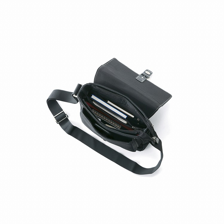 ●内容:内部/中仕切ファスナーポケット・ファスナーポケット各1・オープンポケット×2、前面/オープンポケット×1、背面/マグネット式ポケット×1、開閉部かぶせマグネット式、ショルダーベルト(着脱不可)