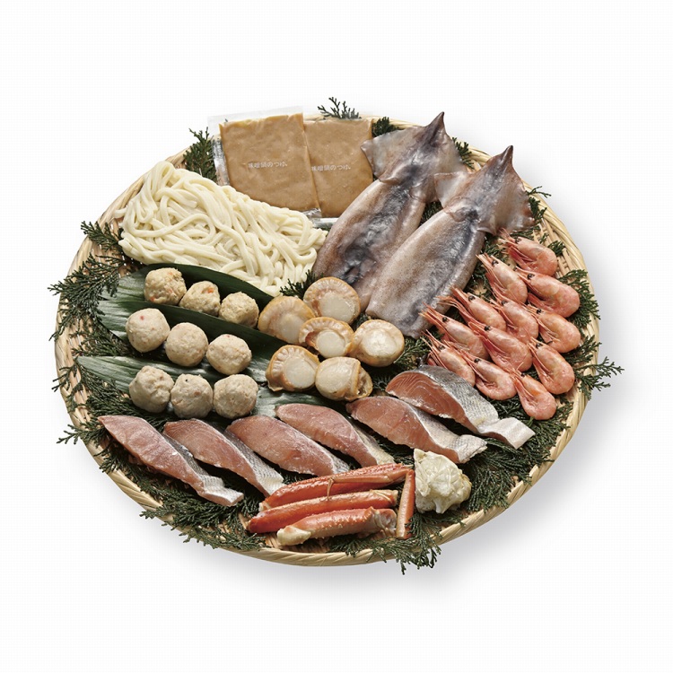 商品内容●セット内容:秋鮭切身40g・ボイル帆立各6、ボイル甘えび×12、つみれ(かに入・えび入・とりごぼう各3)、ツボ抜するめいか100g×2、ボイルズワイガニカット100g・うどん250g各1、たれ付