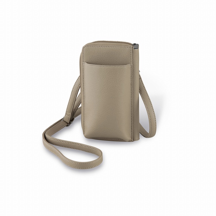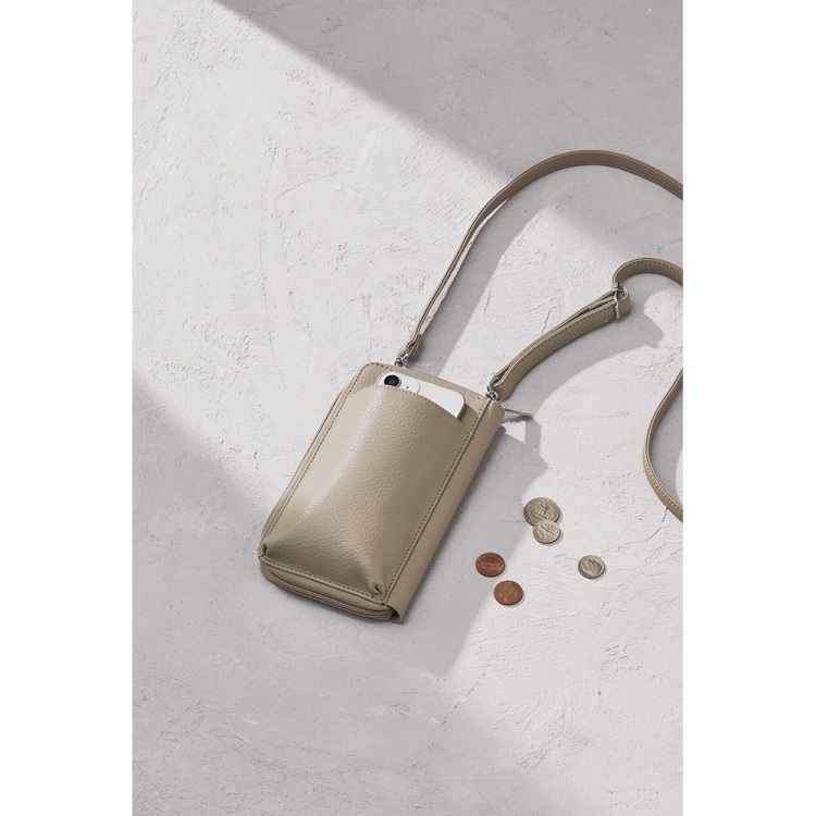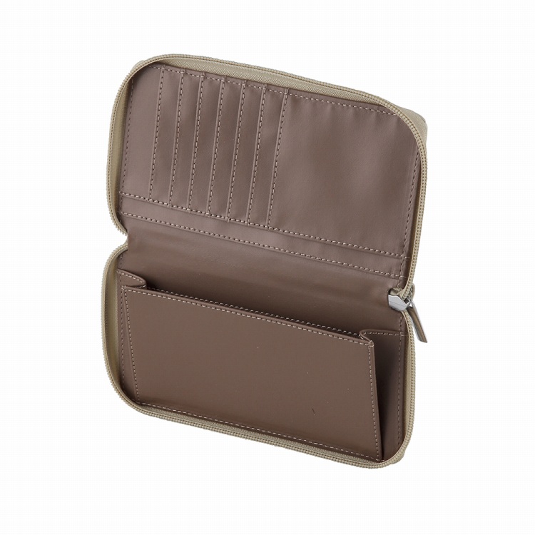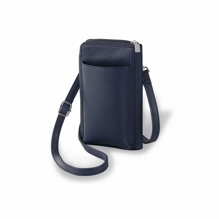 財布に、スマートフォンやカードなどの小物を入れられるポケットを装備したポシェット。