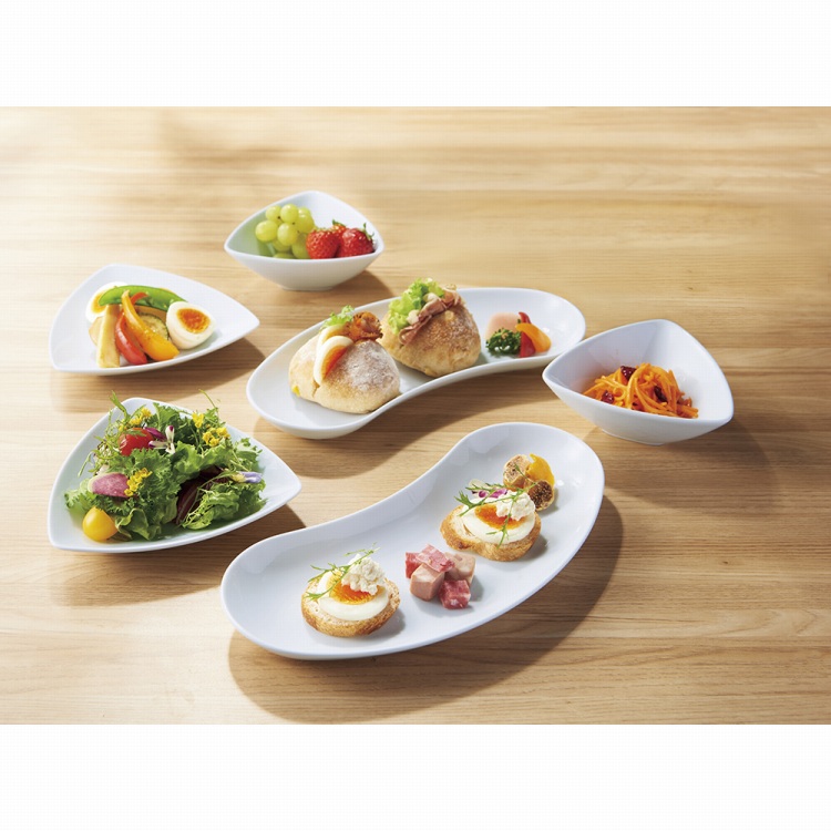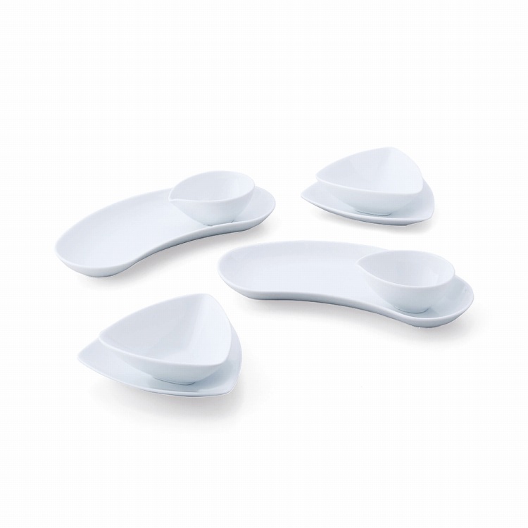 商品内容●商品:デルタボウル(約12.5×12.5×高さ5cm)・デルタプレート(約15.5×15.5×高さ2.5cm)・クレセントプレート(約28×11.5×高さ2.5cm)・ソースポット(約10.5×7.5×高さ4.5cm・適正容量80ml)各2